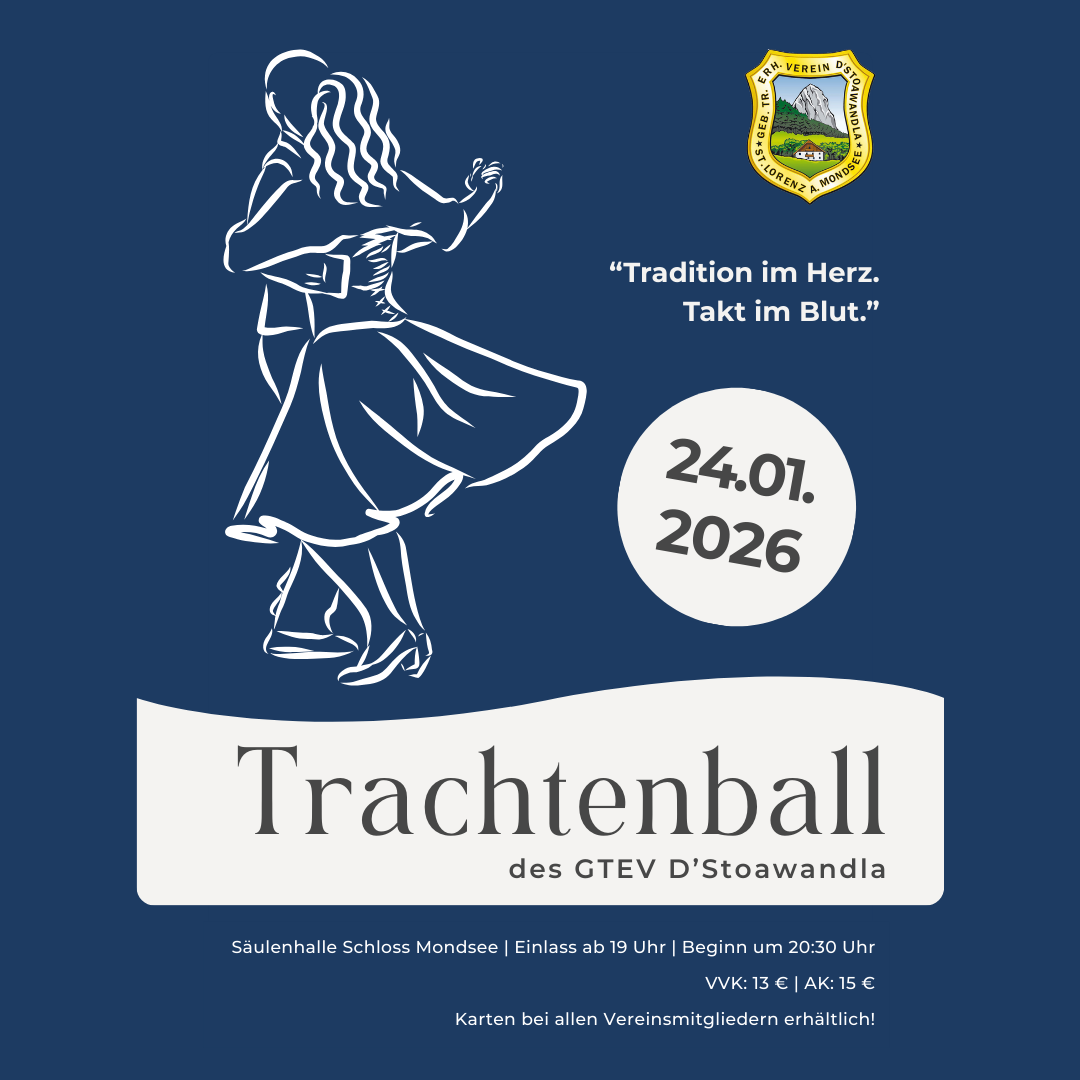 Die D’Stoawandla Trachtler laden euch herzlich zum Trachtenball 2026 ein – ein Abend voller guter Musik, ausgelassener Stimmung und geselligem Miteinander für Jung und Alt! Freut euch auf eine stimmungsvolle Ballnacht mit den jungen Musikern der „Freintalwirtschoft„, die mit schwungvollen Klängen für beste Laune auf der Tanzfläche sorgen. Ob Dirndl, Lederhosn oder elegante Tracht – […]