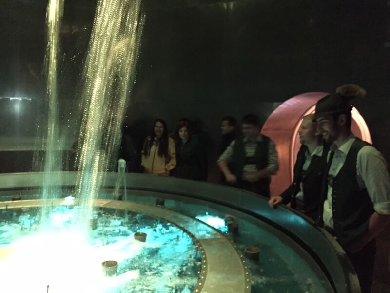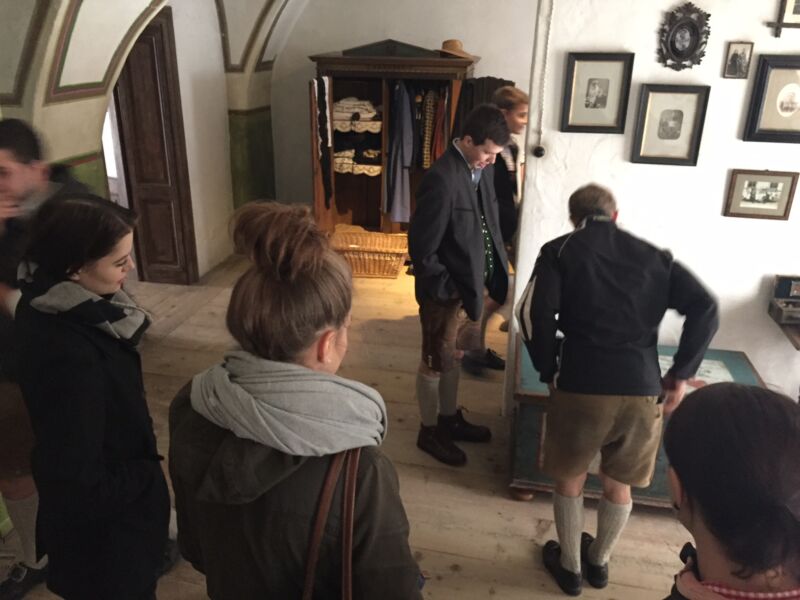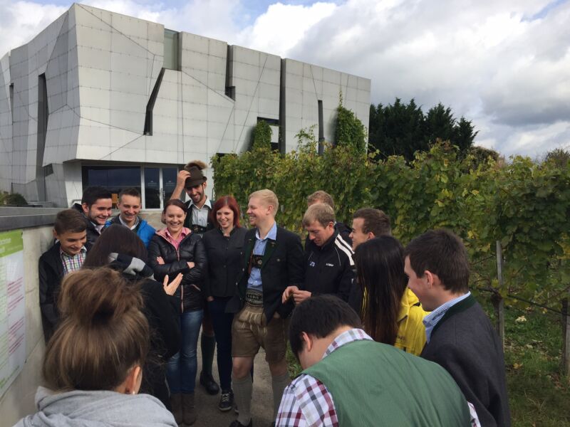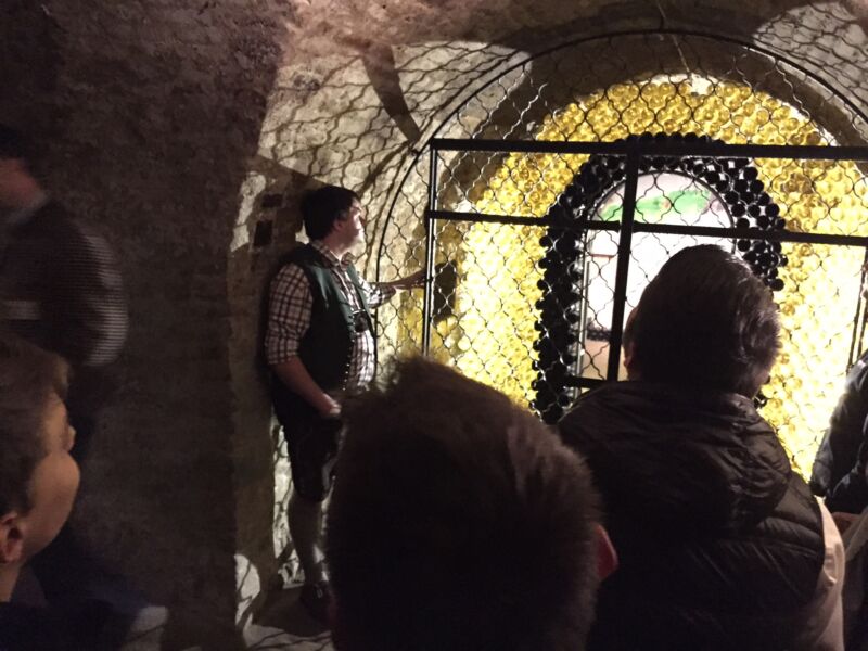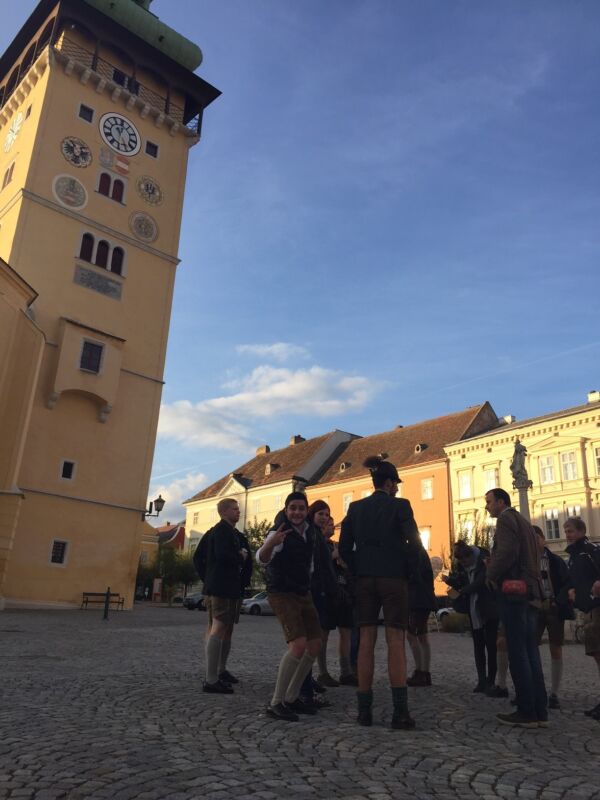 Schon früh morgens machten wir uns auf dem Weg Richtung Niederösterreich, wo wir den ersten Stop in Münichreith einlegten. Dort stärkten wir uns in einer kleinen Wirtshausbrauerei mit „Braumeisterwürsteln“ & „Biertrebernlaberl“. Anschließend führte unsere Reise in die LOISIUM Weinerlebniswelt nach Langenlois. Dort bekamen wir eine Führung durch den Weinkeller und hatten die Möglichkeit ein noch original eingerichtetes Bauernhaus zu besichtigen. Nach einer kleinen Weinverkostung erwartete uns bereits das Weingut Steinschaden, wo wir uns zu Mittag mit traditioneller Hausmannskost stärkten. Durch Zufall fand im selbigen Lokal eine Geburtstagsfeier statt, bei dir wir kurzerhand der Jubilarin einen Plattler vorführten. Nach weiteren Ständchen bei diveresen Tischen führte unser Weg nach Retz. Dort bekamen wir eine Führung im jahrhunderte alten Stadtkeller, welche wir musikalisch umrahmten. Das Labyrinth aus Rohren und Stollen ist mit über 20 km Gesamtlänge wesentlich dichter und weiter ausgebaut als das oberirdische Straßenverkehrsnetz.