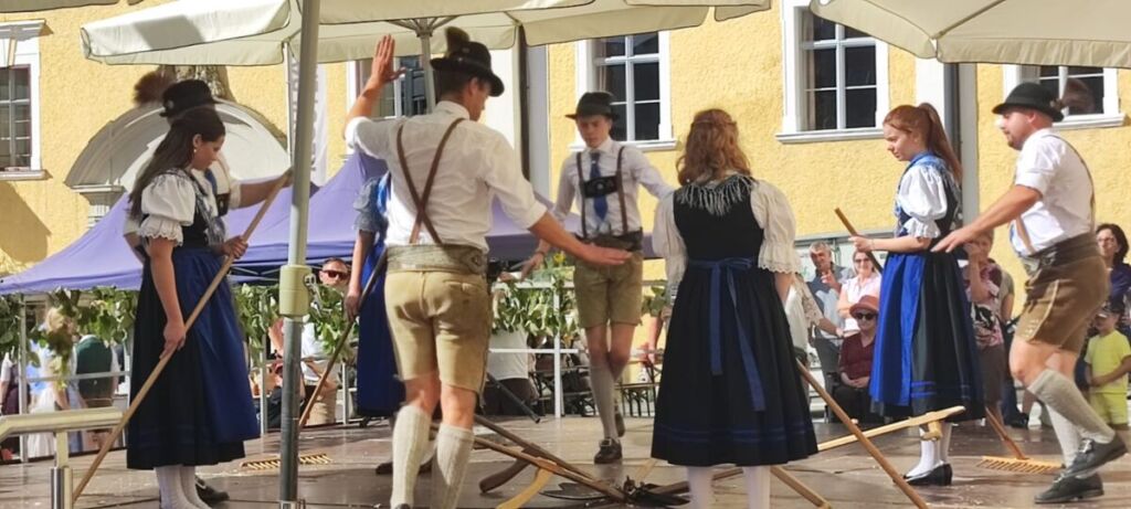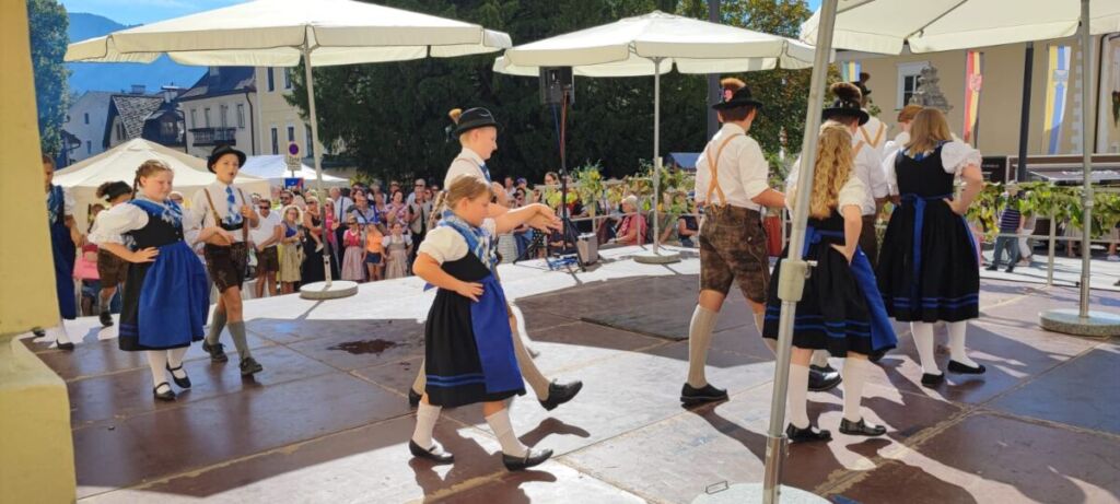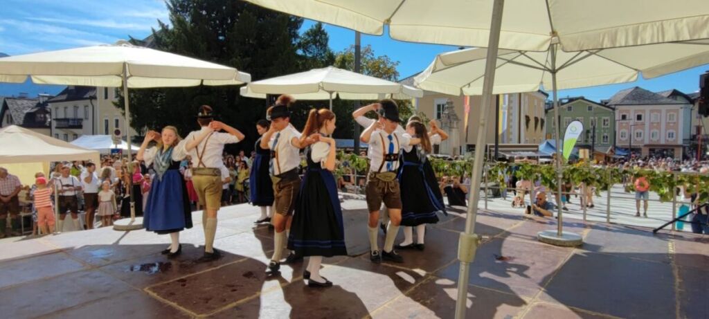 Der Herbst wurde bei sommerlichen Temperaturen eingeläutet: Das Traumwetter hat viele BesucherInnen an den Mondseer Marktplatz gelockt, wo unsere Kinder- und Aktivgruppe, Teil des großartigen Programms sein durften. Wie jedes Jahr ist es uns eine besondere Freude, den zahlreichen ZuseherInnen, neben den traditionellen Verköstigungen und kreativen Handwerken, auch unsere Brauchtumstänze präsentieren zu dürfen. Bei solch perfekten Wetterbedingungen macht der Auftritt gleich noch mehr Spaß und der heimische Most schmeckt doppelt so gut!