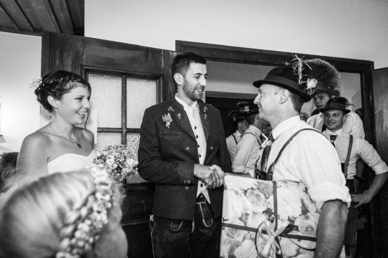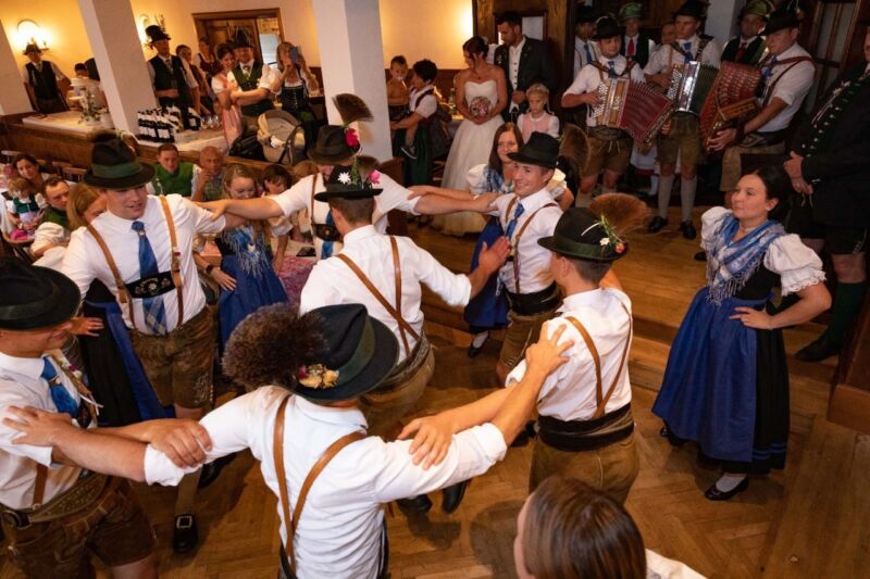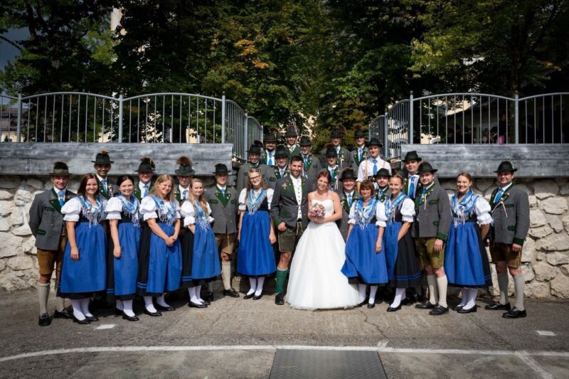 Die Trauung fand bei schönstem Wetter in der Basilika Mondsee statt. Anschließend bildeten die Trachtler einen Spalier für das frisch vermählte Brautpaar.