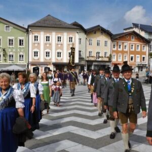 Gemeinsam mit der Bürgermusikkapelle Mondsee, der Goldhaubengruppe Mondsee & Goldhaubengruppe Mondseeland sowie den Prangerschützen Mondsee feierten d’Stoawandla am 04. Juli den Trachtensonntag in Mondsee! Um 9:30 Uhr versammelten sich die Trachtenträger in der Allee in Mondsee um anschließend in die Basilika zu ziehen. Nach einem sehr schönen Gottesdienst mit Ziehharmonika-Musik und gesungenen Liedern von unserem Vereinsmitglied Julia Enzesberger, wurde noch vor der Kirche getanzt. Anschließend stärkten sich die Trachtenträger bei einem gemeinsamen Mittagessen in der Mostschenke Hussenbauer.