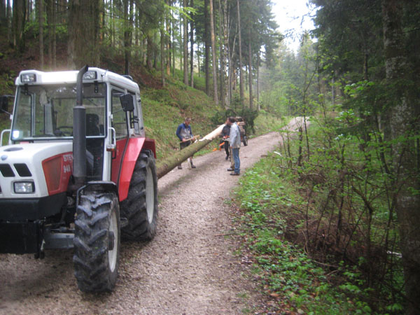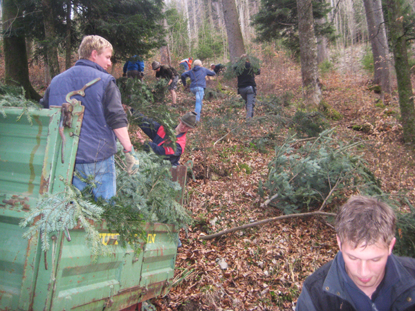 Drei Tage darauf holten Mitglieder der aktiven Gruppe das Tannengrasser aus dem Wald. Freundlicherweise wurde es dieses Jahr von Hammerl Matthias (Eller) gespendet.