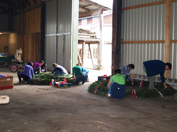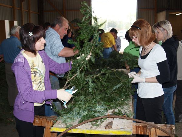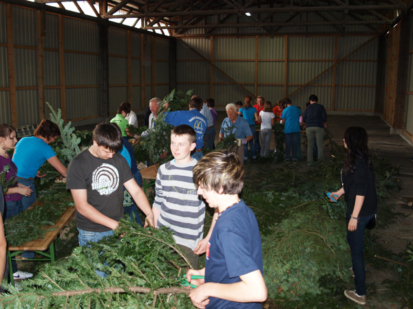 Das Binden der Kränze (für die Girlande und die Ringe) fand am Vorabend des 1. Mais statt. Natürlich musste anschließend alles sorgfältig bewacht werden um eventuellen Diebstahl zu vermeiden.